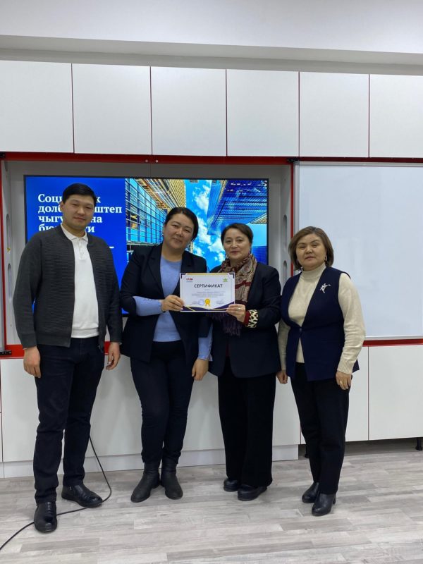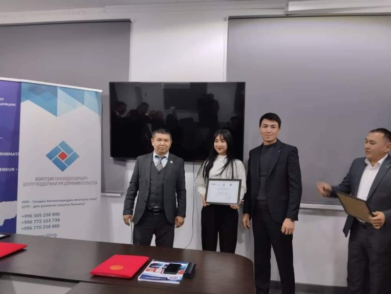 Талас облусунун жумушсуз жарандары үчүн эл аралык кызматташтык боюнча Германиянын GIZ коомунун колдоосу менен » Ишке орноштурууга жана кесиптик окууга көмөктөшүү » долбоорунун алкагында бир айлык окутуунун жыйынтыгы коруу максатында долбоордук сунуштарды презентациялоо боюнча демо-күн өткөрүлдү. Эскерте кетсек, окутуунун негизги максаты -ишкердик жаатында билим деңгээлин жана көндүмдөрүн жогорулатууну каалаган жаңыдан иш баштаган ишкерлердин долбоордук сунушту жазуу саналат. Аталган демо-күнго Талас райондор аралык эмгек,социалдык камсыздоо жана миграция башкармалыгынын башчысы Д.Т.Рысалиева;эл аралык кызматташтык боюнча Германиянын GIZ коомунун тренери, DevCIT Acceleration компаниясынын координатору Кожокулова Жаныл;Талас облусунун ишкерликти өнүктүрүү фондунун кызматкери Кабылбекова Анара; Талас облусундагы Айыл банк ААКнын директору М.К.Бейшекеев; Талас облусундагы РСК банк ААКнын окулу Ы.Ж.Жумалиев жана жана 1 айлык курстук угуучулары катышышты. Демо-күндүн жүрүшүндо курстун угуучулары өздөрү тандаган багыты боюнча жазылган долбоордук сунуштарын презентациялашты. Белгилей кетсек,аталган курстун 10 угуучусунун ичинен жазылган долбоордук сунушунун негизинде 6 угуучуга Талас райондор аралык эмгек,социалдык камсыздоо жана миграция башкармалыгы тарабынан жаны ишкерлик баштоого 100000 сомдук социалдык жардам бериле турганын тастыктаган сертификат берилген. Демо-күндүн жыйынтыгында, экономика жана менеджмент кафедрасынын окутуучулары М.К. Дуйшебаева, Э.М.Арыкбаеваларга жана бир айлык курстук 10 угуучусуна сертификаттар тапшырылды.