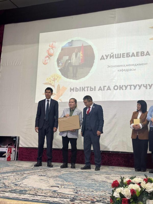 1. Маалыматтык технологиялар, техника жана экономика институтунун директору, педагогика илимдеринин кандидаты, доцент Курманалиева Айнура Озубековнага берилет.
