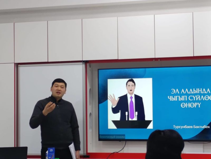 2024-жылдын 26-28 февраль кундору Бишкек шаарындагы City honel мейманканасынын базасында Жаштарды өнүктүрүү институту тарабынан «Натыйжалуу коммуникация жана PR-стратегия» темасында тренинг өткөрүлдү. Аталган тренингге Кыргызстандын 7 облусунан келген өкүлдөр катышышты. Тренингдин программасына ылайык тажрыйбалуу тренерлер: «Еврохантер компани» ЖЧКсынын өнүктүрүү боюнча директору, «Кыргызстан ишкерлер альянсы» бизнес ассоциациясынын башкармалыгынын мүчөсү Каниметова Бермет; ак илбирсти жана анын экотутумун сактоо боюнча Глобалдык программанын коммуникациялык эксперти Максатбеков Жоомарт; lalafонун маркетинг боюнча директору , э.и. к. Руслан Гайдоровдор өз тажрыйбасы менен бөлүшүштү. Тренинг учурунда байланыш жана ийгиликтүү PR-стратегия боюнча маалымат берилип, контент-план, медиа-пландар менен иштөө суроолору камтылды. Аталган тренингге экономика жана менеджмент кафедрасынын окутуучусу Э.М.Арыкбаевакатышты.