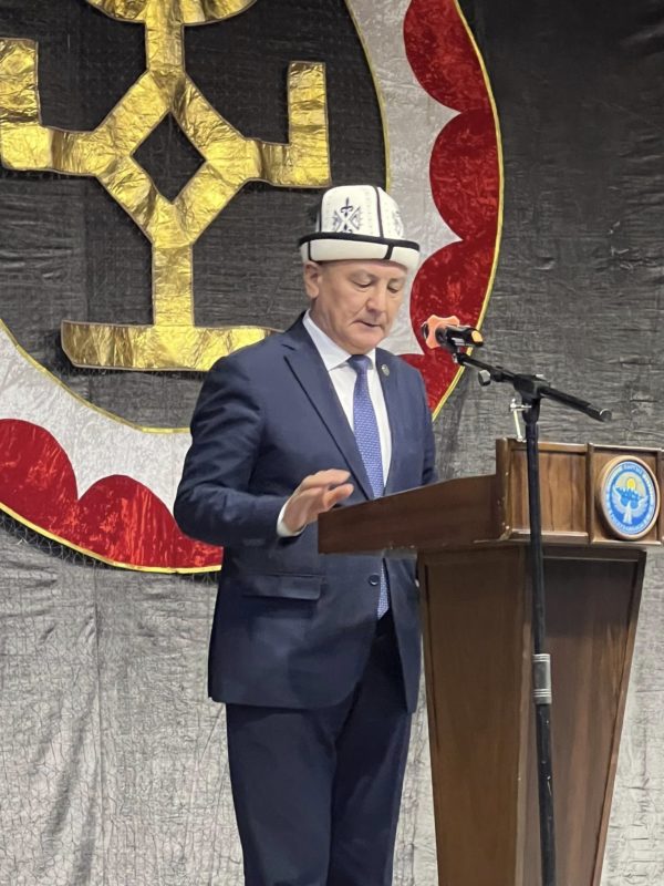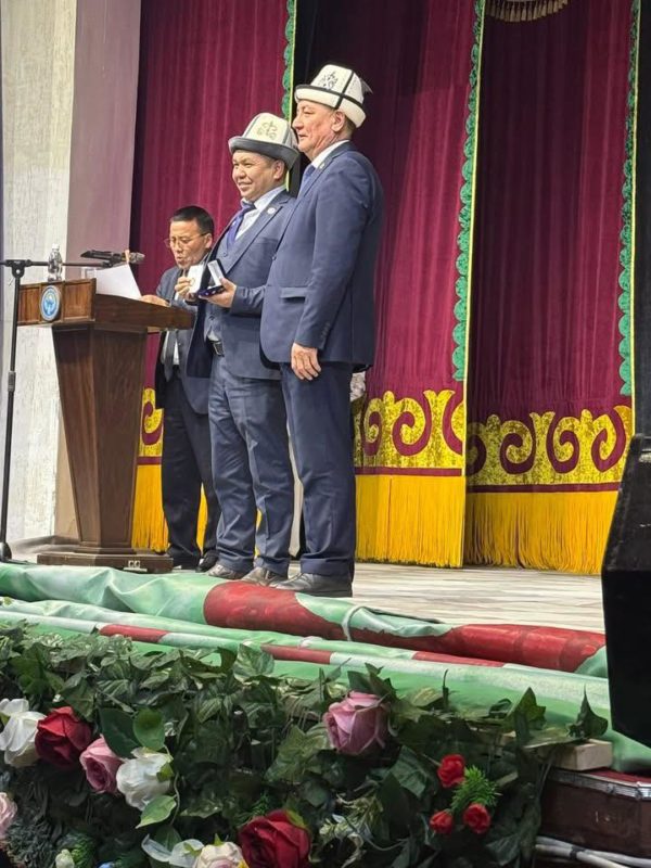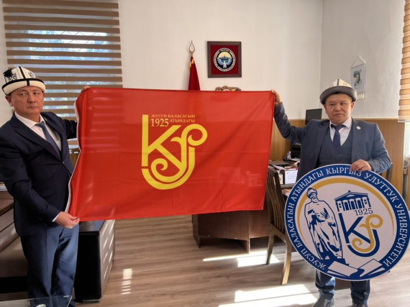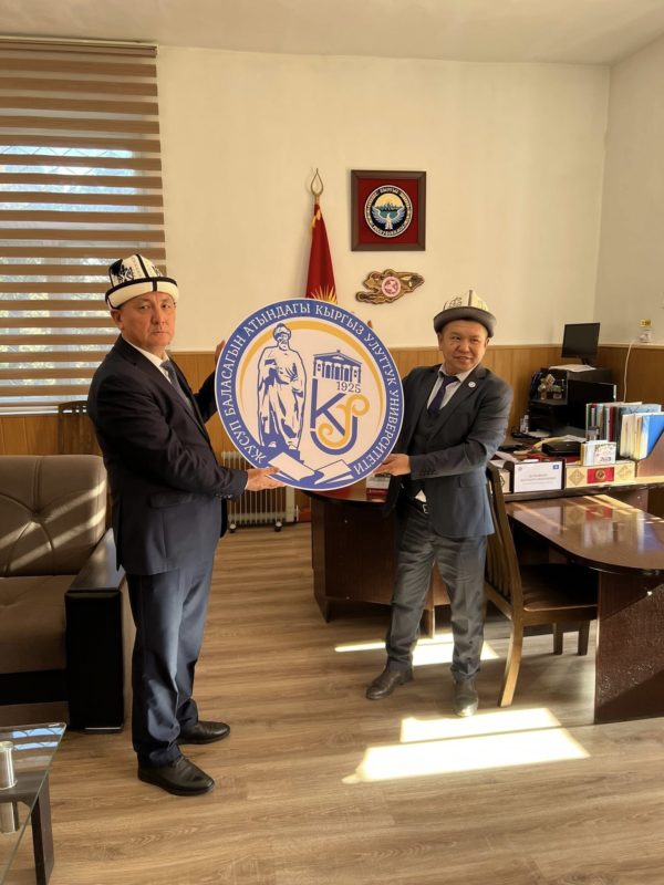 Талас мамлекеттик университетинин ректору Ж.С.Шаршембиевге, доцент Э.А.Уметовго КУУнун юбилейлик медалы тапшырылды.