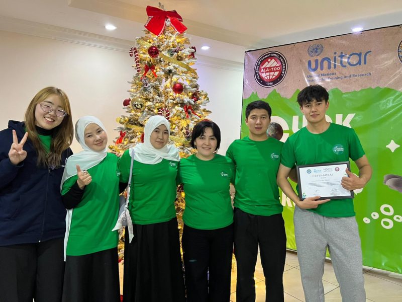 Команда курамы: Агробизнес, биоэкология жана туризм институтунун студенттери — Жолдошова Ширин, Рысалиева Халида, Усенова Кымбат, Уланбек уулу Бектур жана Калыков Адилет.