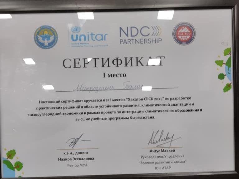 Иш-чара туруктуу өнүгүү, климатка адаптация жана көмүртек деңгээли төмөн экономика боюнча практикалык чечимдерди иштеп чыгууга арналган. Бул долбоор Кыргызстандын жогорку окуу жайларындагы климаттык билим берүүнү интеграциялоону максат кылат.