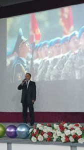 Депутаттардын Талас шаардык кеңешинин төрагасы К. Джаныбеков , Мамлекеттик тил, инфраструктураны өнүктүрүү жана эл аралык байланыштар боюнча проректор К.Т.Жунусалиева , Кесиптик кошундун төрагасы Э. А.Абдраимовдор куттукташып, окутуучуларга сыйлыктарды тапшырышты.
